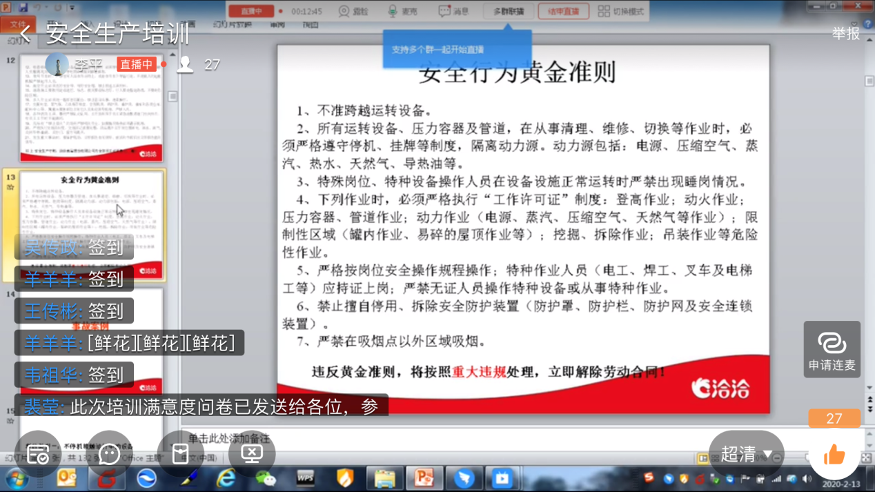 2月13日,目前全國抗擊疫情進(jìn)入關(guān)鍵時(shí)期,堅(jiān)果派也不忘使命、加緊步伐,利用釘釘網(wǎng)絡(luò)直播平臺(tái)分別開展了全員《安全生產(chǎn)管理培訓(xùn)》及《防范新型冠狀病毒培訓(xùn)》,調(diào)整員工工作狀態(tài),保證組織安全、健康、平穩(wěn)的運(yùn)行。